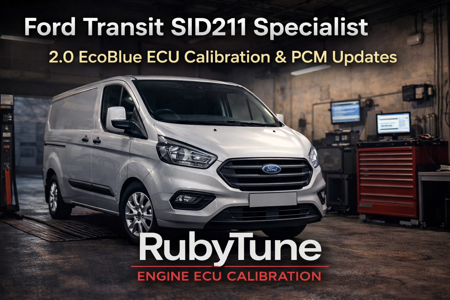 RubyTune specialises in Ford Transit ECU systems and regularly works with SID208, SID211, and SID212 platforms.