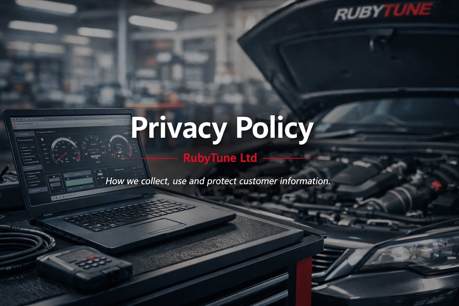 RubyTune Ltd takes appropriate measures to protect personal information and does not sell or share customer data with third parties except where required to carry out vehicle diagnostic or programming services.
